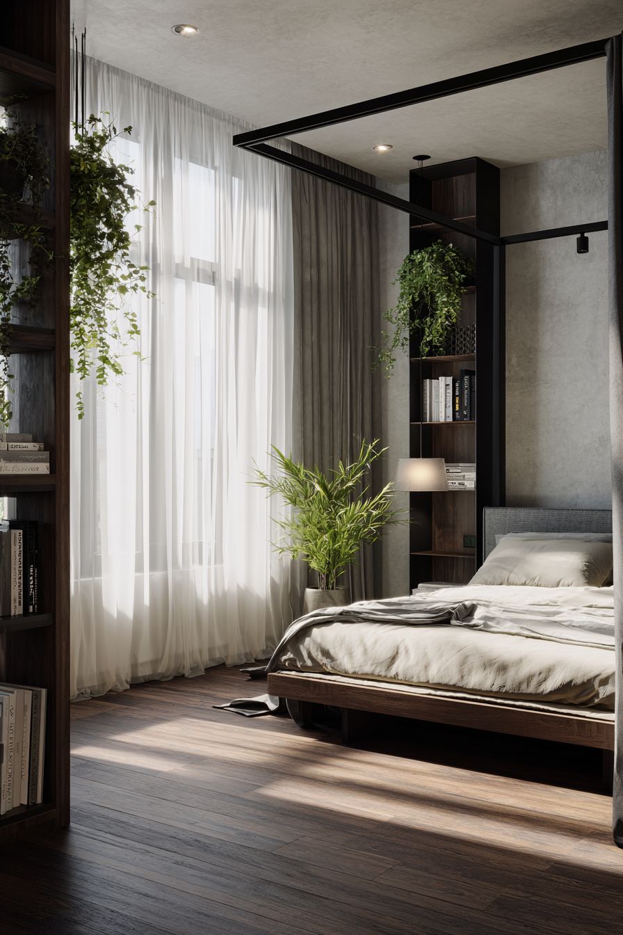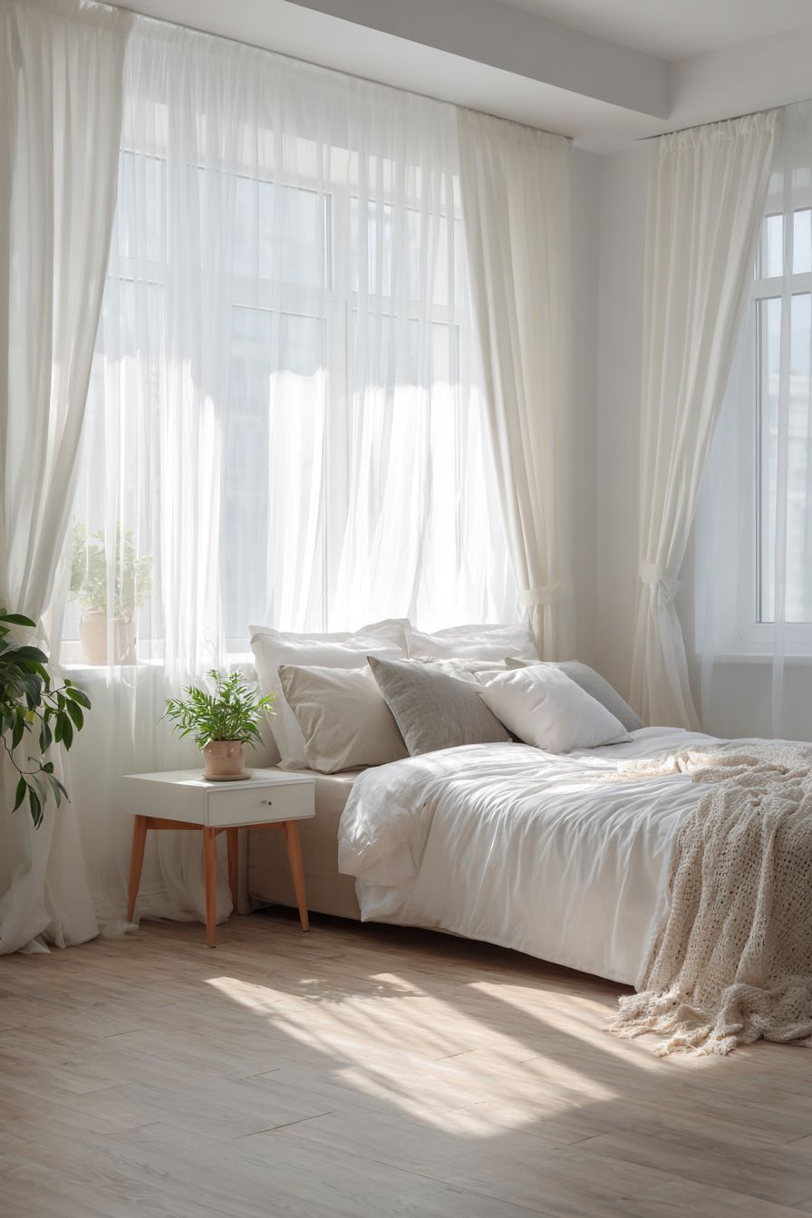 The use of light curtains, neutral tones, and clean lines makes the space feel larger. This approach is perfect for those who prefer a clutter-free and calming environment.