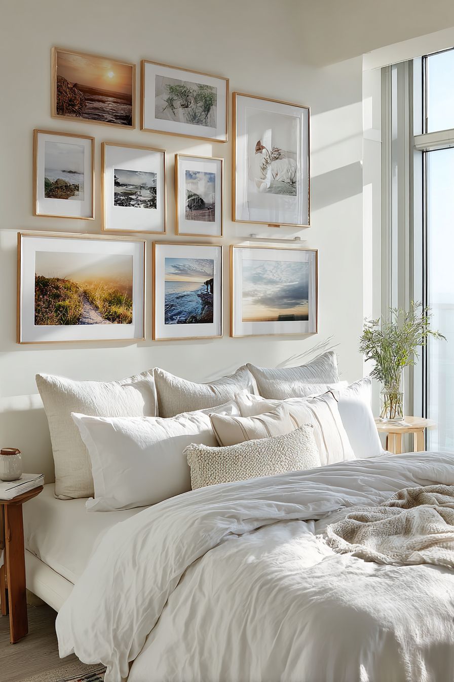 A gallery wall adds personality while keeping the rest of the room minimal. It allows you to decorate without adding clutter.