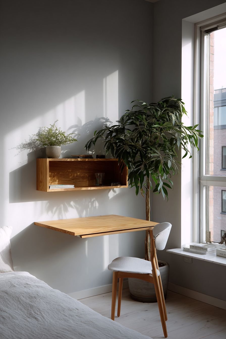 Paired with a simple chair and natural light, this setup feels light and uncluttered. It’s ideal for people who need a workspace but want to maintain a minimalist aesthetic.