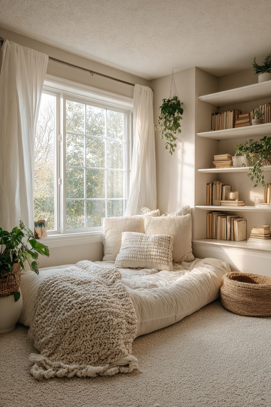 This setup makes use of natural light while providing a relaxing space for reading or unwinding.