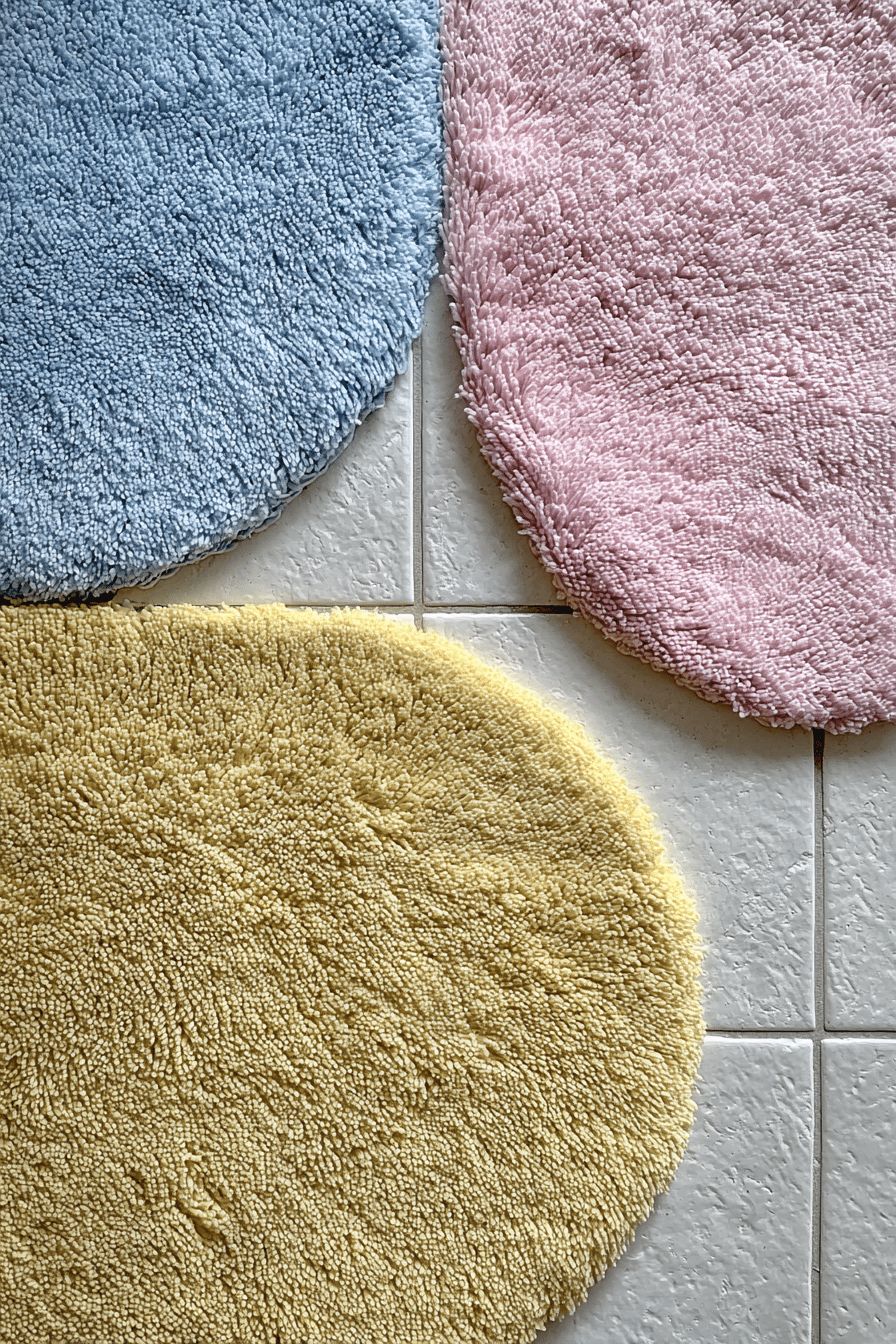Round bath mats in soft pastel tones add a playful yet cozy element to your bathroom. Their fluffy texture enhances comfort while also contributing to the overall aesthetic.